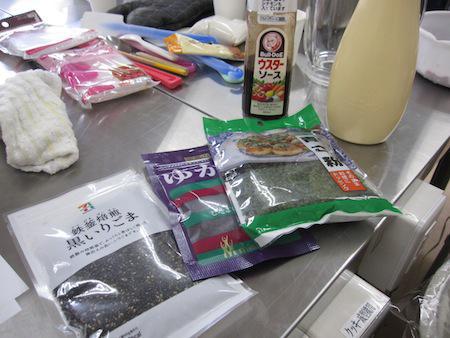青のり、胡麻、マヨネーズ、塩コショウ、七味、ソースまで色々お好みで…