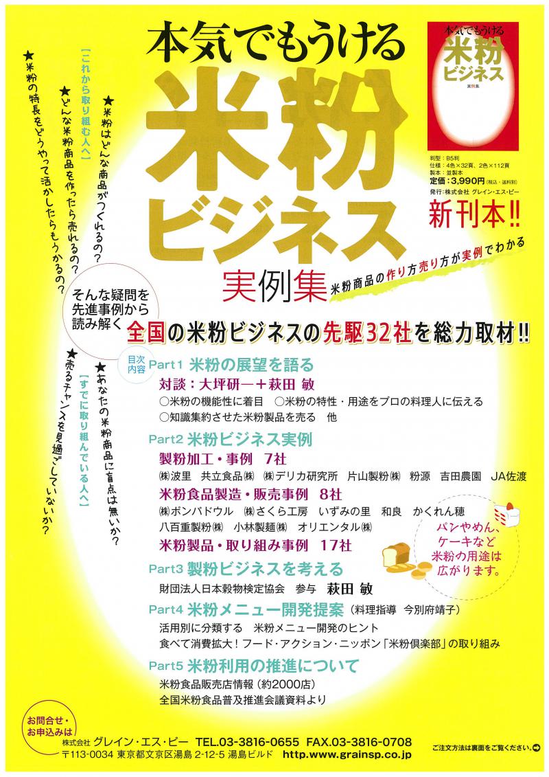 そんな疑問を先進事例から読み解く全国の米粉ビジネスの先駆32社を掲載しており、参考となると思います。