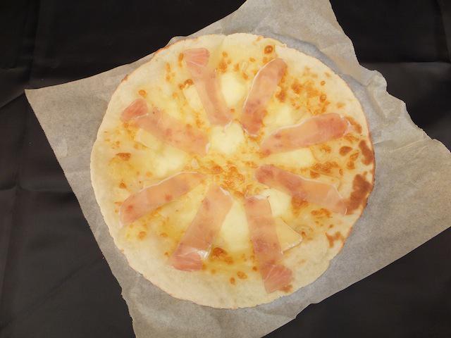 モッツァレラとカマンベールのピッツア 生ハムをのせて