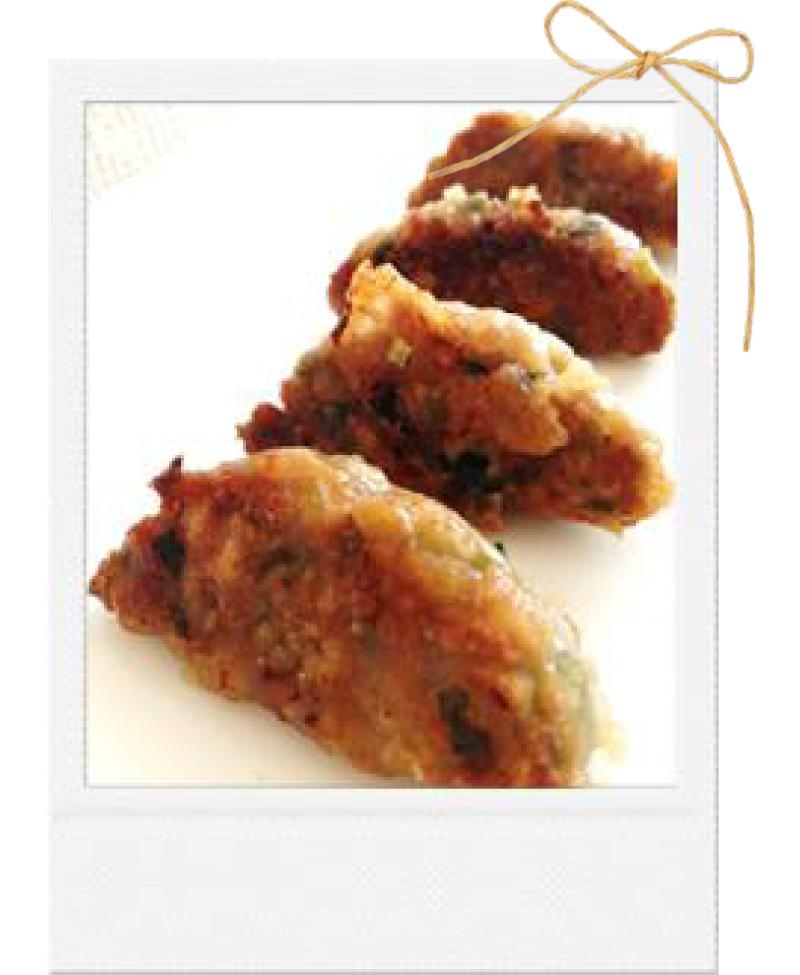 2. まとめた具材を12等分に分け、手に水をつけて餃子の形に形成する。