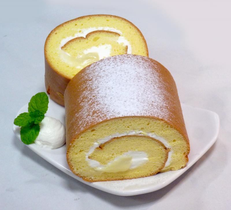 4. 生地をつぶさないようにロール紙を持ち上げながら生地を巻いていく。