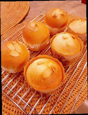 1. 70gに分割した生地を丸めてマフィンカップに入れる。