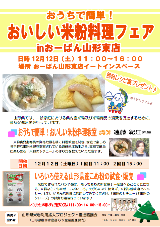 『おうちで簡単!おいしい米粉料理フェアinおーばん山形東店』が開催されますのでお知らせします!