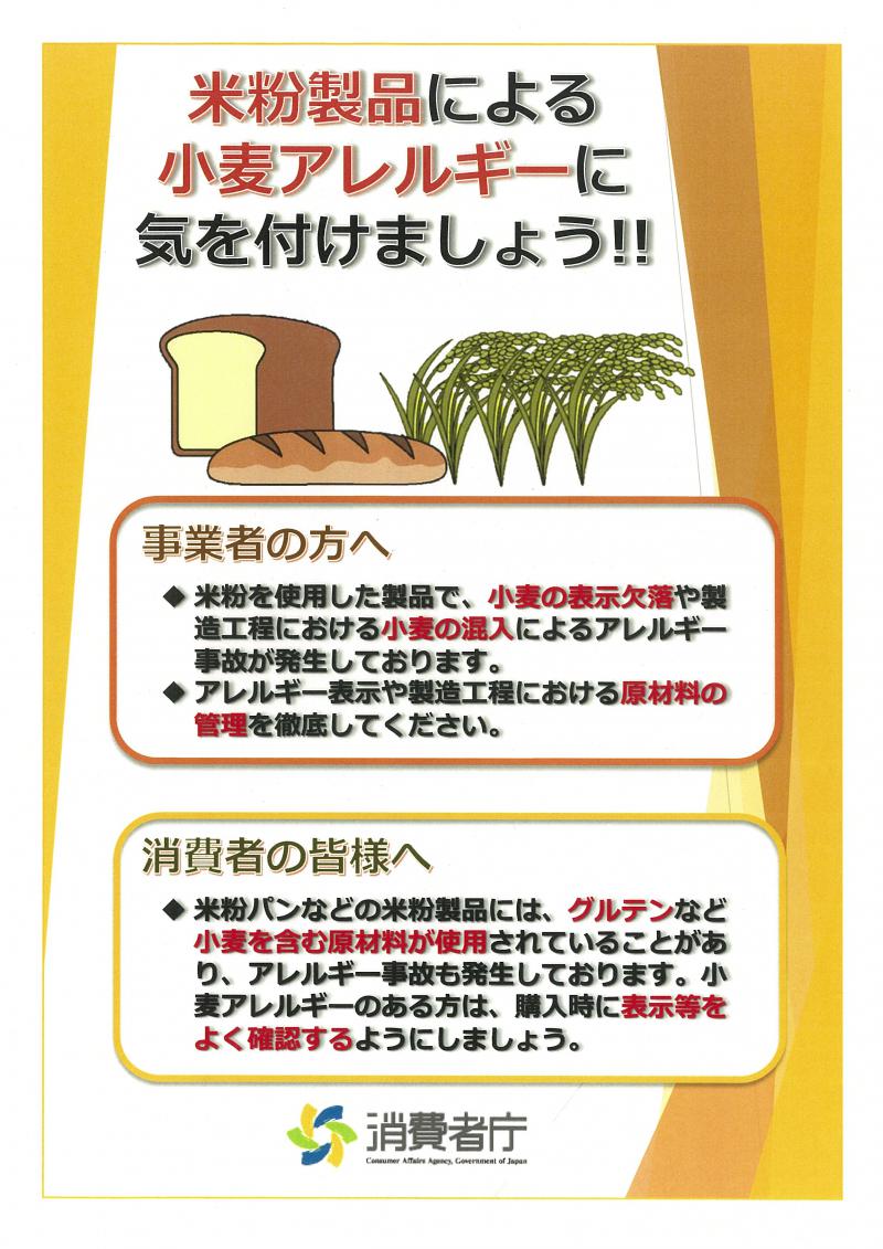 米粉製品の製造・販売や購入の際は以下のことに気を付けて、米粉製品による小麦アレルギー事故をなくしましょう!