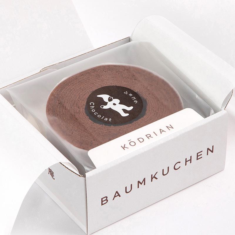 フランス生まれの厳選チョコをたっぷり使用。鮮烈かつ濃厚なカカオの味わいながら油脂分は比較的少ないため食べ心地は軽やか。しっかりしたカカオテイストと滑らかな食感が自慢のバウムクーヘンです。