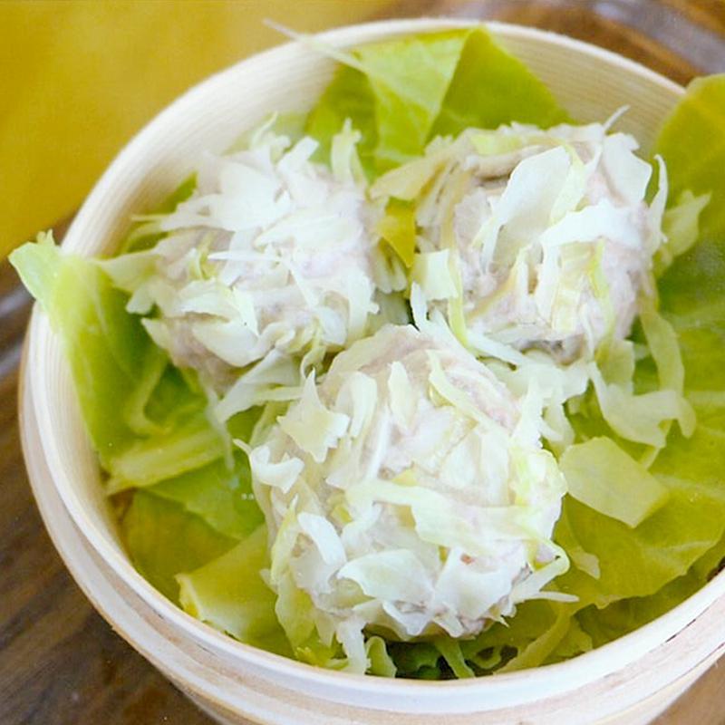米粉を使ってもちもちしたシューマイの具を山形産のキャベツで包みました。