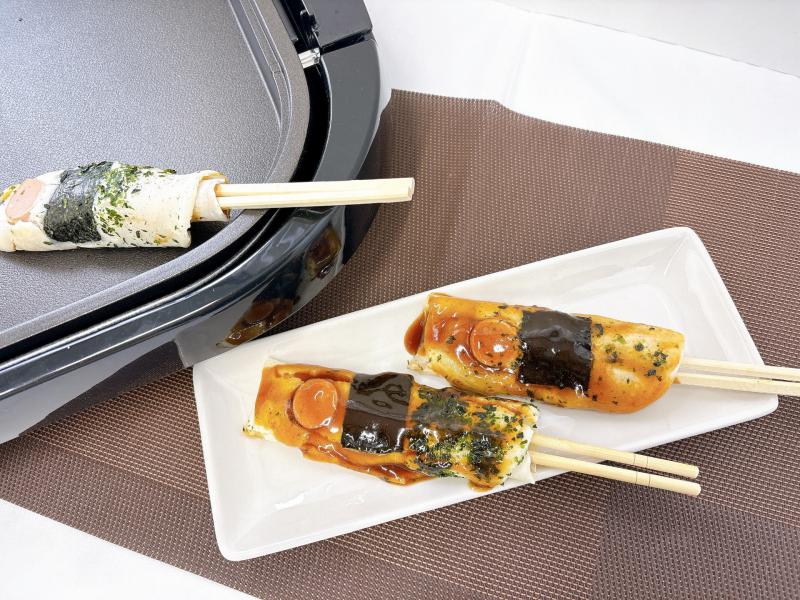 【下準備】焼きのりは2×3p、魚肉ソーセージは2o位に切っておく。
