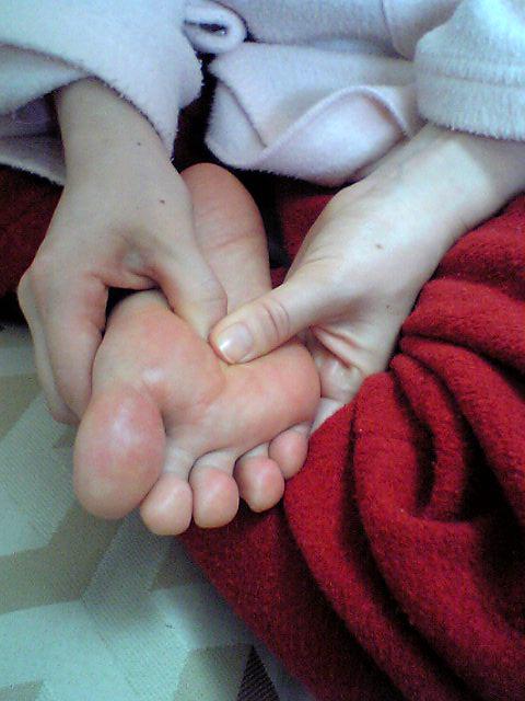 主に親指(脳下垂体)や湧泉(冷え改善)、失眠というツボです。