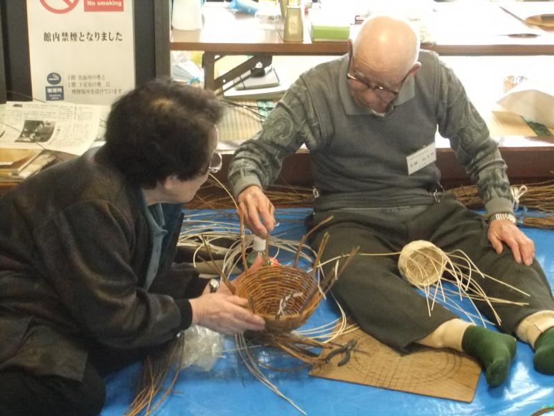 アケビやマタタビ、ブドウのつる等を使って“はけご”や“籠”などを編む「つる細工」