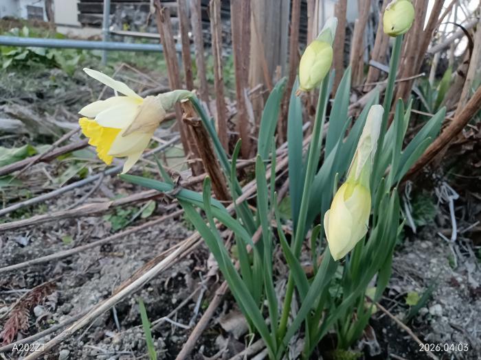 一昨日は天元台アルブの助勤頼まれて、昨日はロープウエイの湯元宿直頼まれて2日間家開けて帰宅するとスイセン咲いてました、スイセンはその多様な姿と育てやすさから、世界中で親しまれている植物です。ヒガンバナ科スイセン属に分類される多年草(数年にわたって生存し続ける植物)であり、我が家の花壇にも、畑の周りと道路境界の擁壁際にスイセン植えてます・・これからどんどん咲き始めますが、一凛だけ咲いとりました・・