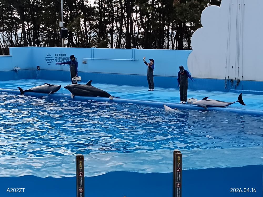 4月16日従妹の住む新潟へ旅行、子供に帰って水族館へ行こうと、市内からすぐのマリンピア日本海へ行きました。500種2万点の水生生物を飼育展示する日本海側有数の水族館というところ。イルカショーにアシカショー通年で毎日開催というからいいですね大人1500円で6名でだと9000円ですが6枚つづりの券だと7500円です、ちょうど6人でしたから1250円になるのですね・・これだけの設備で、イルカやアシカのショーも見れて安いわね・・トドにアシカにゴマアザラシくんかわいいですね・・ショーの時間に合わせていくから、水槽の見学途中で移動、じっくり見るならかなり時間かかりますね・・