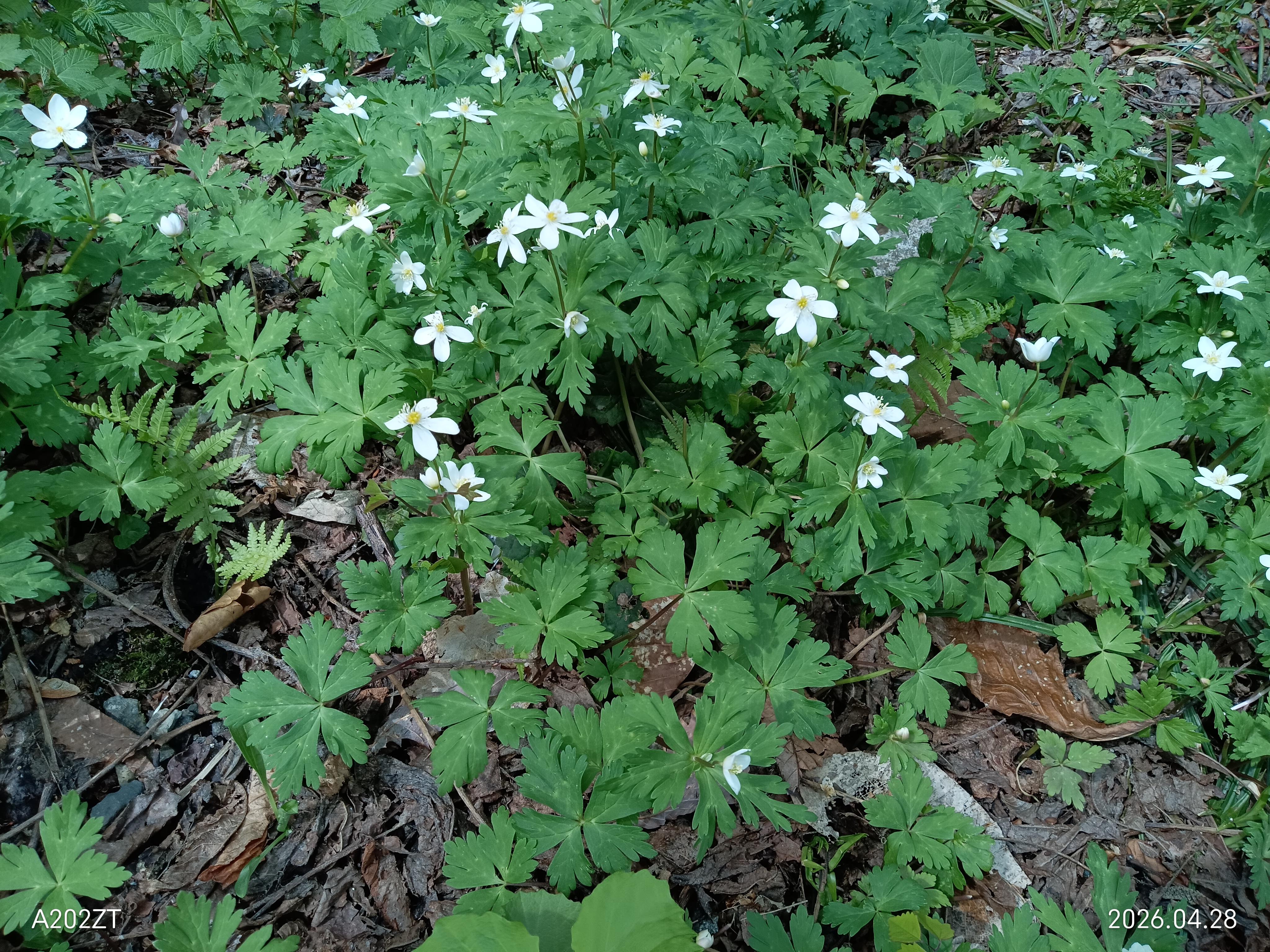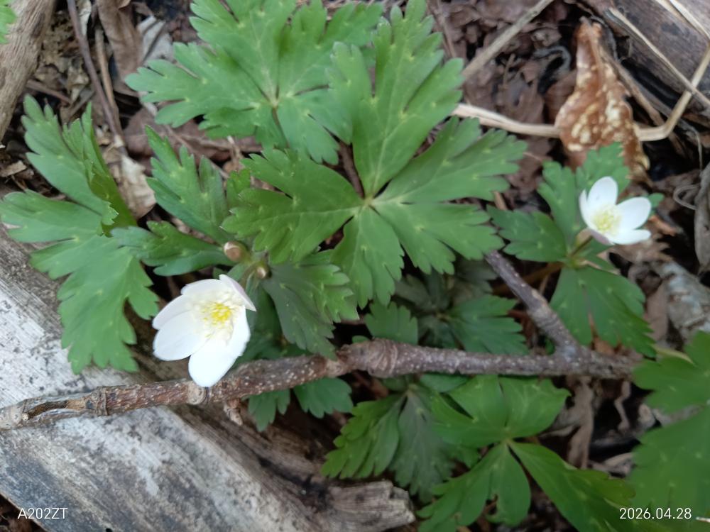 天元台高原ロープウエイ湯元から新高湯温泉に行く道路・・西吾妻への登山道でもある、湯の入り沢に沿ってニリンソウ咲いてました、山野の林内や林縁の湿った場所に生える多年草。花期は4~5月頃、代表的な山野草のひとつです。