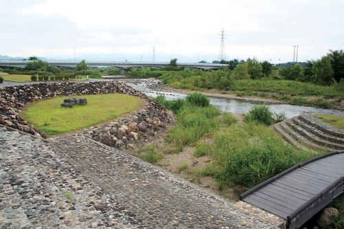 丹生川ふれあい広場は、中心部に近く、丹生川中流の河原にある。散策路のほか、中州のように川の中央付近に、スペースが設けられ、水面まで下りられるように整備されている。