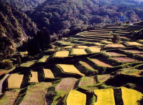 合算と葉山のふもと、豊牧・沼の台・滝の沢・平林に、120ヘクタールにも及ぶ棚田が斜面に連なる。その4地区を総称して四ヶ村と呼ぶ。日本の棚田百選にも選定され、現在は四ヶ村棚田保存委員会によって保存されている。