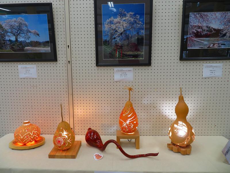 これまでの受賞作品の一部と、桜をモチーフにした優しい瓢箪(ひょうたん)の灯りの展示を行います。