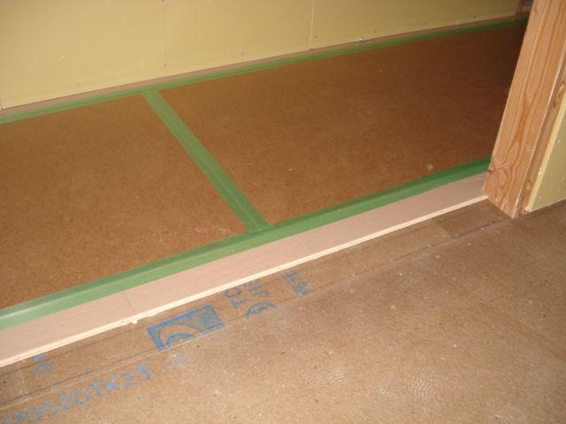 張り終わった所から、傷がつかない様、すぐに養生ボードを敷いています。
