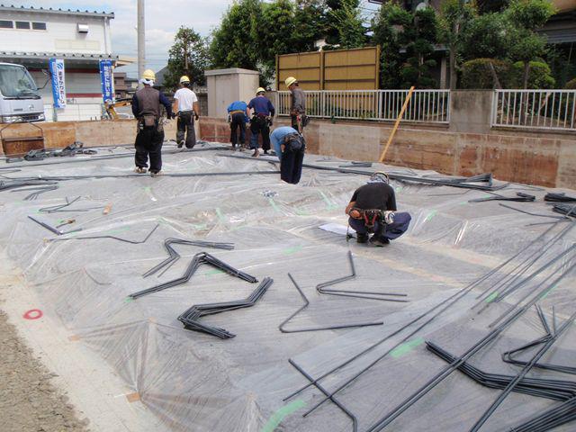 今日は朝から鉄筋配筋です。鉄筋屋さんが沢山来てくれました。