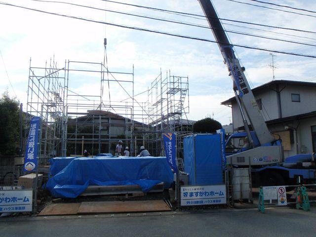 本日建て方 朝から晴れて 建て方日和です。