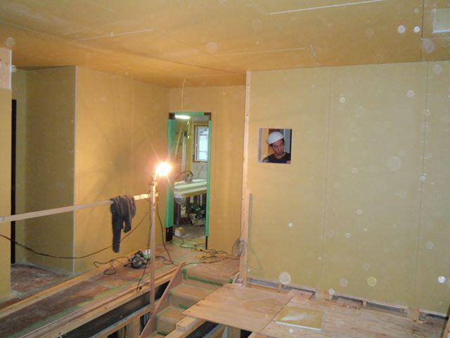 2階の間仕切壁 ボード貼りしております。