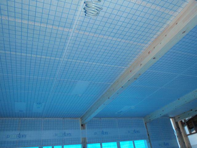 2階の天井と1階の壁断熱材を 充填しました。
