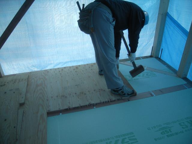▼河北町H団地 HA様邸新築工事-19 床構造用合板貼り 『テクノストラクチャーで建てる山形の長期優良住宅』