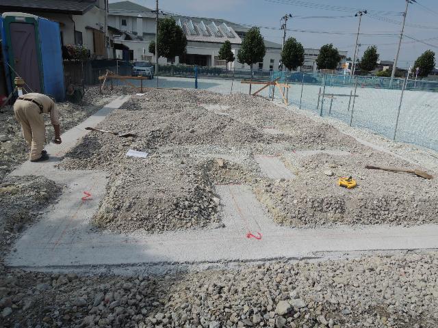捨てコンクリートの上に墨出しを行いました。
