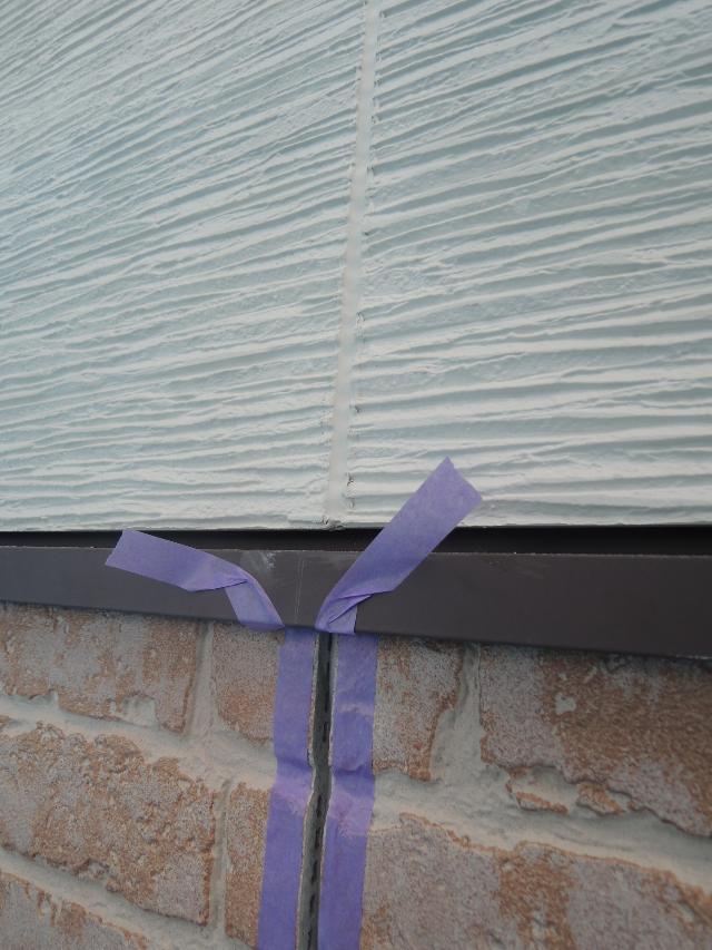 外壁にシーリングがつかないようにマスキングテープを貼ってからシーリング材を打ち込みます。
