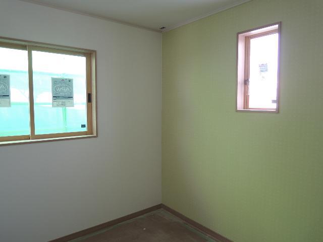 子供室の一面は、アクセントになるように、クロスの色を変えております。