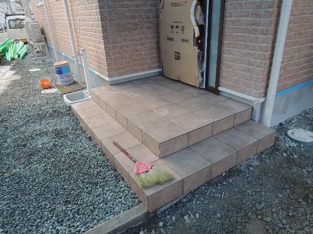 ▼東根市 HT様邸新築工事 28 玄関タイル貼り完成 『テクノストラクチャーで建てる山形のHEMS導入の家』