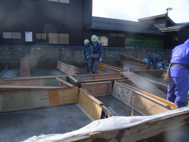 基礎の1回目のコンクリート打設が終了し、本日は内部型枠組立です。