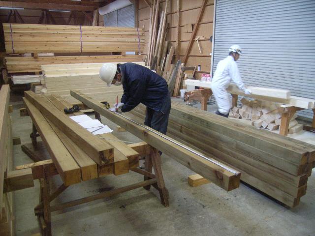 本日より軸組材の事前加工開始です。