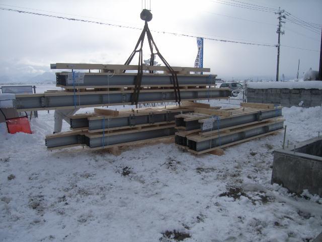 ▼河北町H団地 HI様邸新築工事-15 テクノストラクチャー材料搬入 『テクノストラクチャーで建てる山形の長期優良住宅』