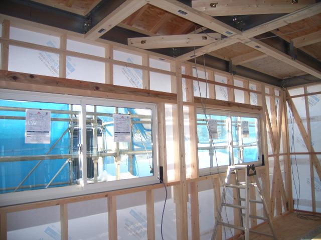 アルミサッシの取付け完了しておりました。