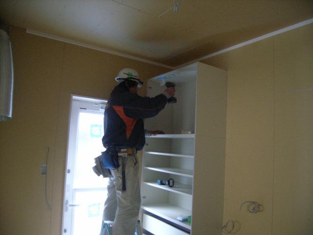 カップボード(食器棚)より取付け開始です。