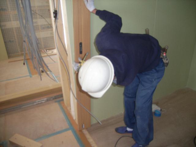 内部の建具枠を取付けしております。