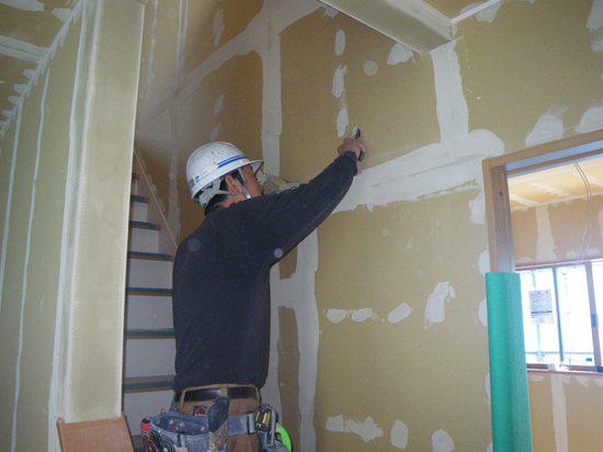 外壁工事が急ピッチで進められる中、内部でも内装工事が進められます。
