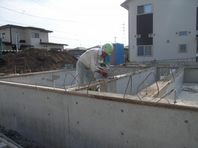 基礎工事も大詰めです。本日は天端モルタルを施工しております。