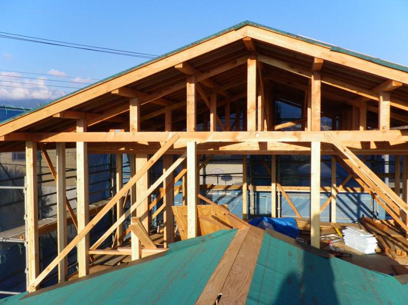 ▼東根市 K様農作業場改築工事-09 建方完了、屋根下地