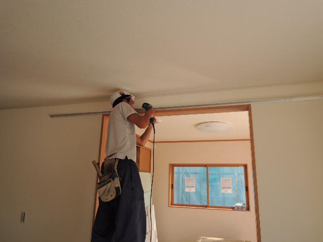 クロスを貼った後に取付けとなる『すらっと引戸』の取付を行っております。