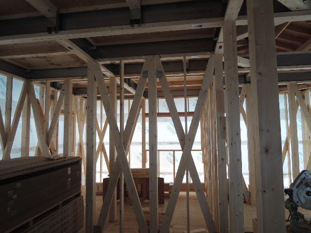 筋交い、火打ち梁等の施工が完了です。