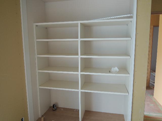 内部ではお施主様と打合せした仕様の棚取付け開始です。