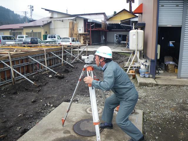 レベルという機械をのぞいている先にはこんな感じで合図を待っている作業員が・・・