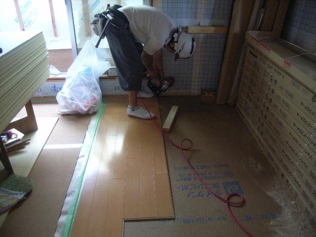 防振の為、『コンビボード』の上にフローリングを貼っていきます。