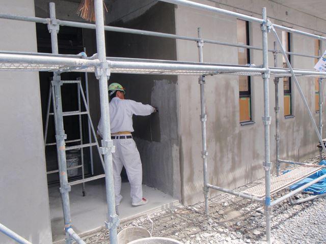 1階外壁の塗装下地 左官工事も