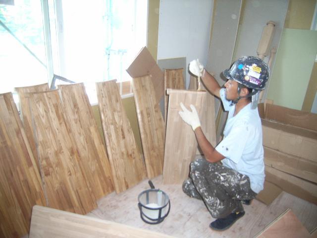 今塗っているのは踏板です。かなり厚みのある踏板です。