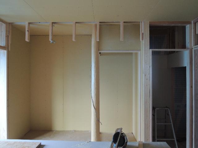 1階大壁和室の造作工事の状況です。大壁和室といえども、床柱、床の間、神棚等盛りだくさんです。