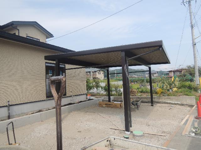 外構工事順調です。カーポート設置と化粧ブロック積みが完了です。