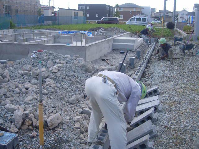 隣地境界部分にコンクリートブロックを積んでいます。