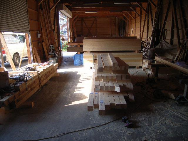 木材の加工状況です。材木屋さんの加工場にて大工さんが、事前加工をしています。