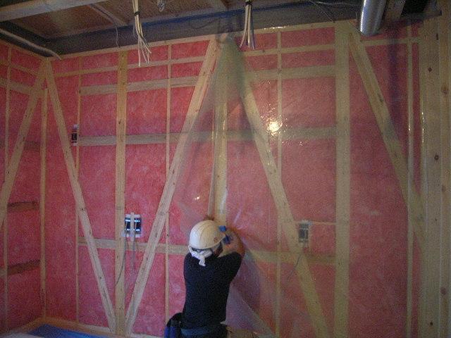 1階壁の断熱工事も間もなく終了します。